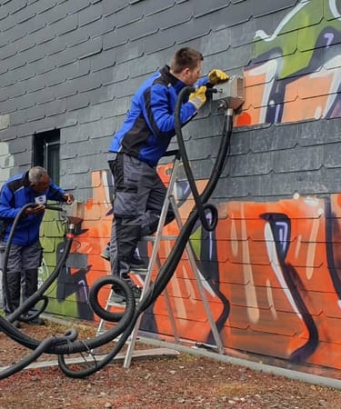 Kaufen statt teuer mieten: Wir investieren in eigene Geräte und Fahrzeuge, von Kleingeräten bis zu Großfahrzeugen – vom Trockeneistrahl-gerät bis zur LKW-Arbeitshebebühne. Dadurch profitieren Sie nicht nur preislich, sondern auch von garantierter Verfügbarkeit & schnellerer Reaktionszeit.